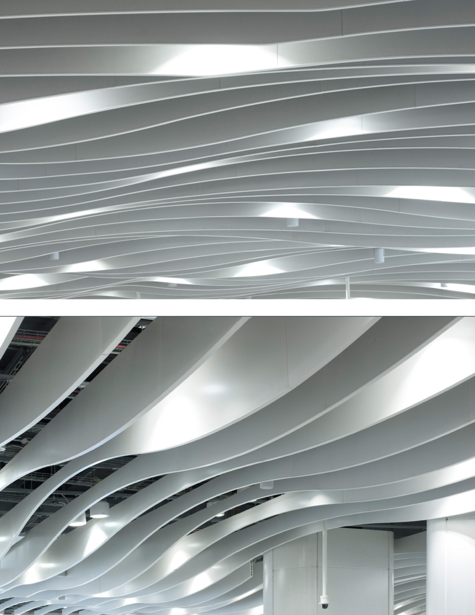 Our waveform baffles offer the same acoustic advantages of SAS500, the significant difference being the shape of each baffle. The radii of the baffles can form individual elements or continual, rhythmic lines stretching across a ceiling plane.